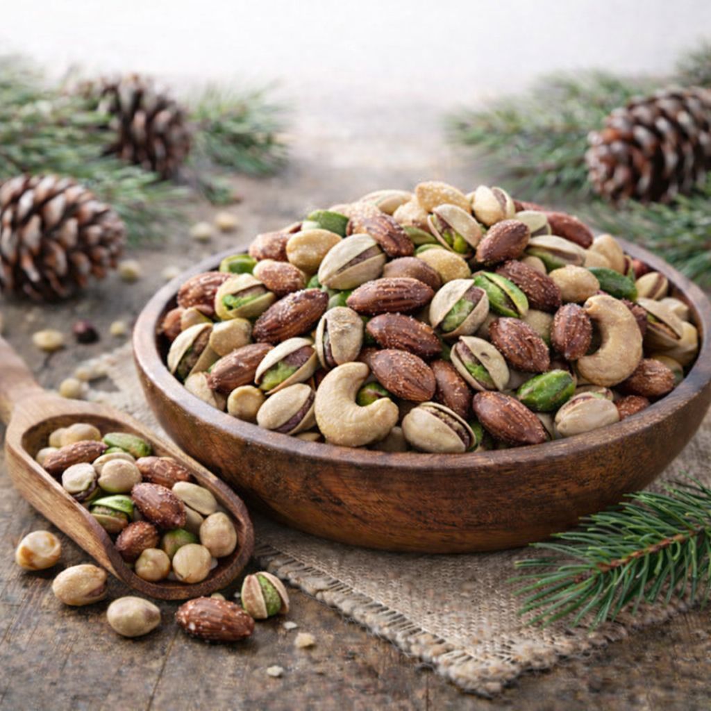 NOIX de MACADAMIA, PISTACHES, AMANDES, sel.